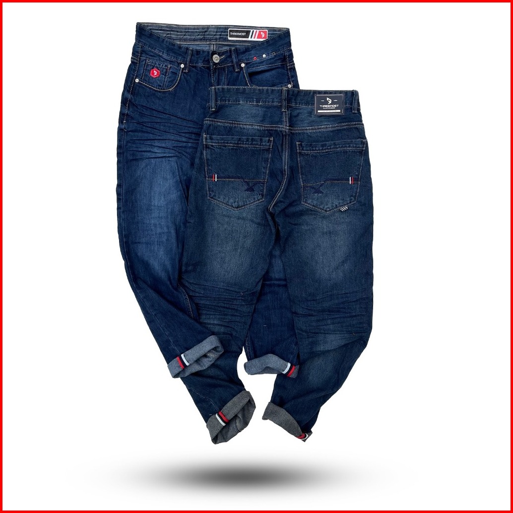 Threemost - Celana Panjang Jeans Pria Slimfit Premium Distro Jeans Straight Slimfit Basic Reguler