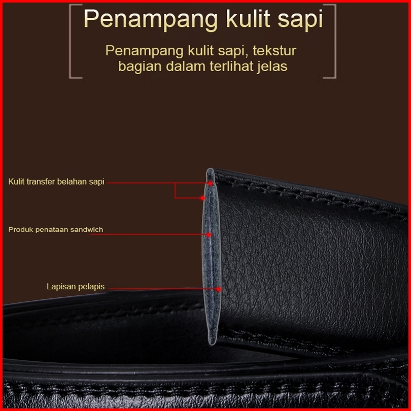Sabuk Pinggang Pria Hitam Belt Pria Gesper Otomatis 100 Tali Pinggang Pria Kulit Asli For Bisnis Kantor Sehari-hari