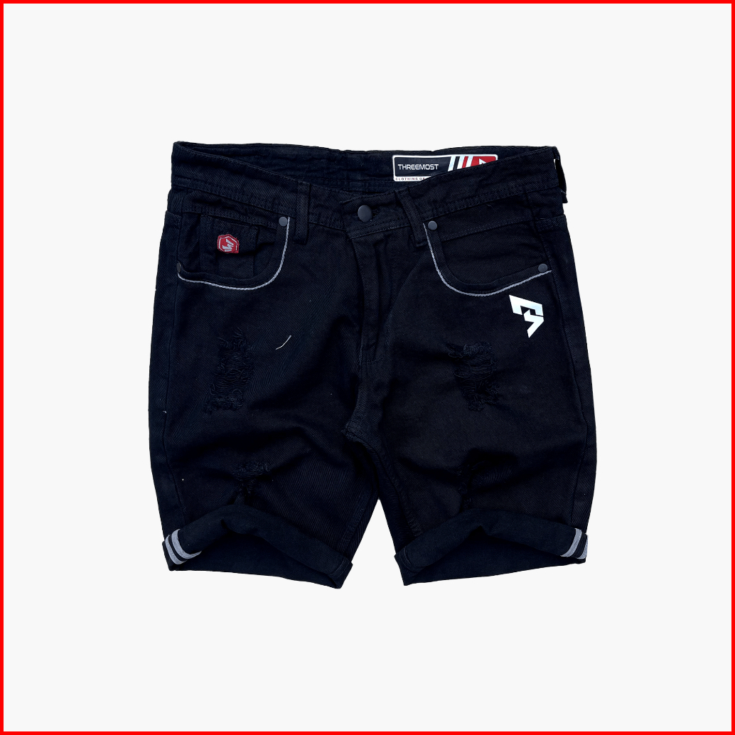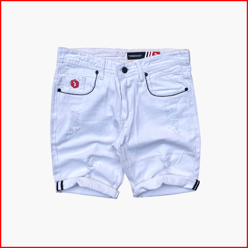 Threemost - Celana Jeans Pendek Ripped Sobek Pria Korean Style Putih Hitam Original Casual