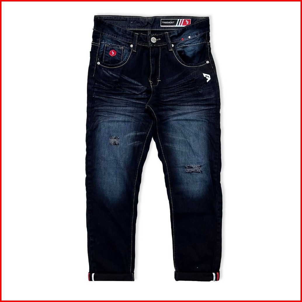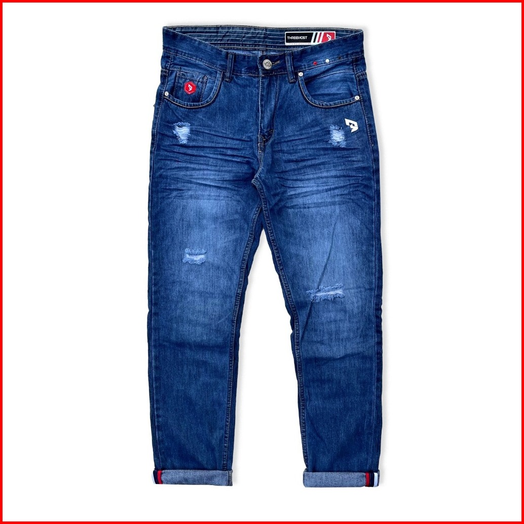 Celana Jeans Panjang Jeans Sobek Lutut Pria Ringkel Ripped Slimfit Full. Bordil Original Threemost