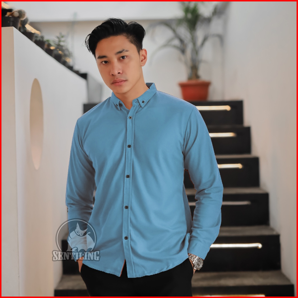 Kemeja Pria Kemeja Pria Lengan Panjang Kasual Polos M L Xl Xxl