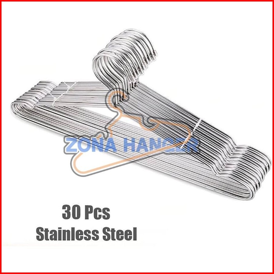 Zonahanger 30 Pcs Gantungan Baju Hanger Stainless Kawat Baja Besi Tahan Anti Karat 30pcs Isi 30 Hanger Kawat