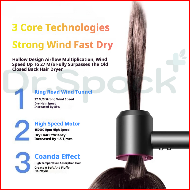 Dr.spock High Speed Hair Dryer Hairdryer Pengering Rambut - High Speed Turbo 150000 Rpm