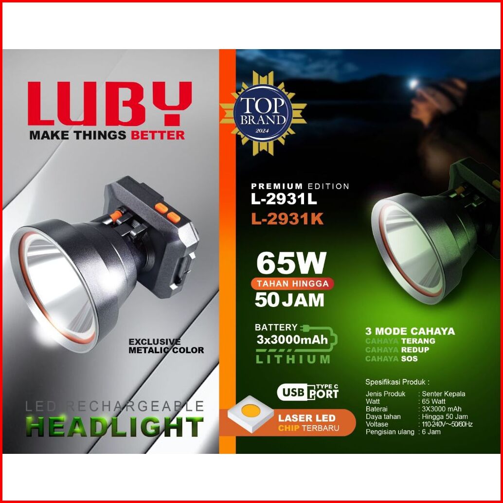 Senter Kepala Led 65w Luby L-2931l - Baterai 9.000mah Lithium - Jarak Jauh - Tahan Lama - Type-c