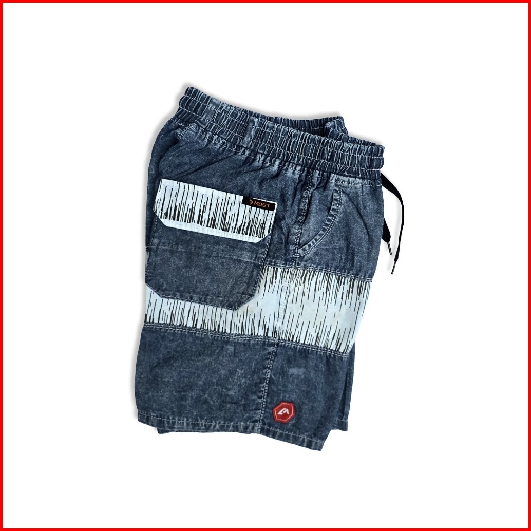Threemost - Celana Pendek Jeans Whisker Boardshort Kolor Snow Wash Denim Santai Kolor Pinggang Karet