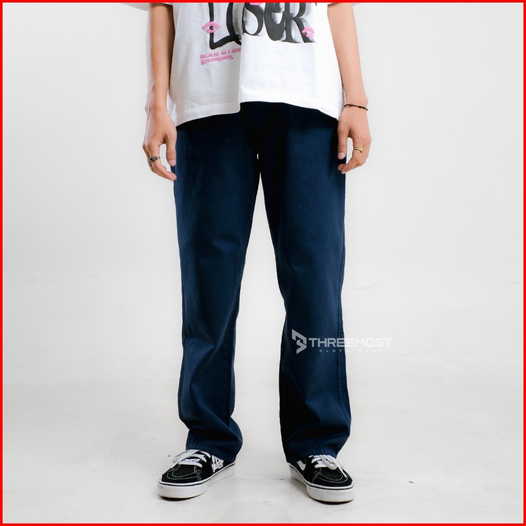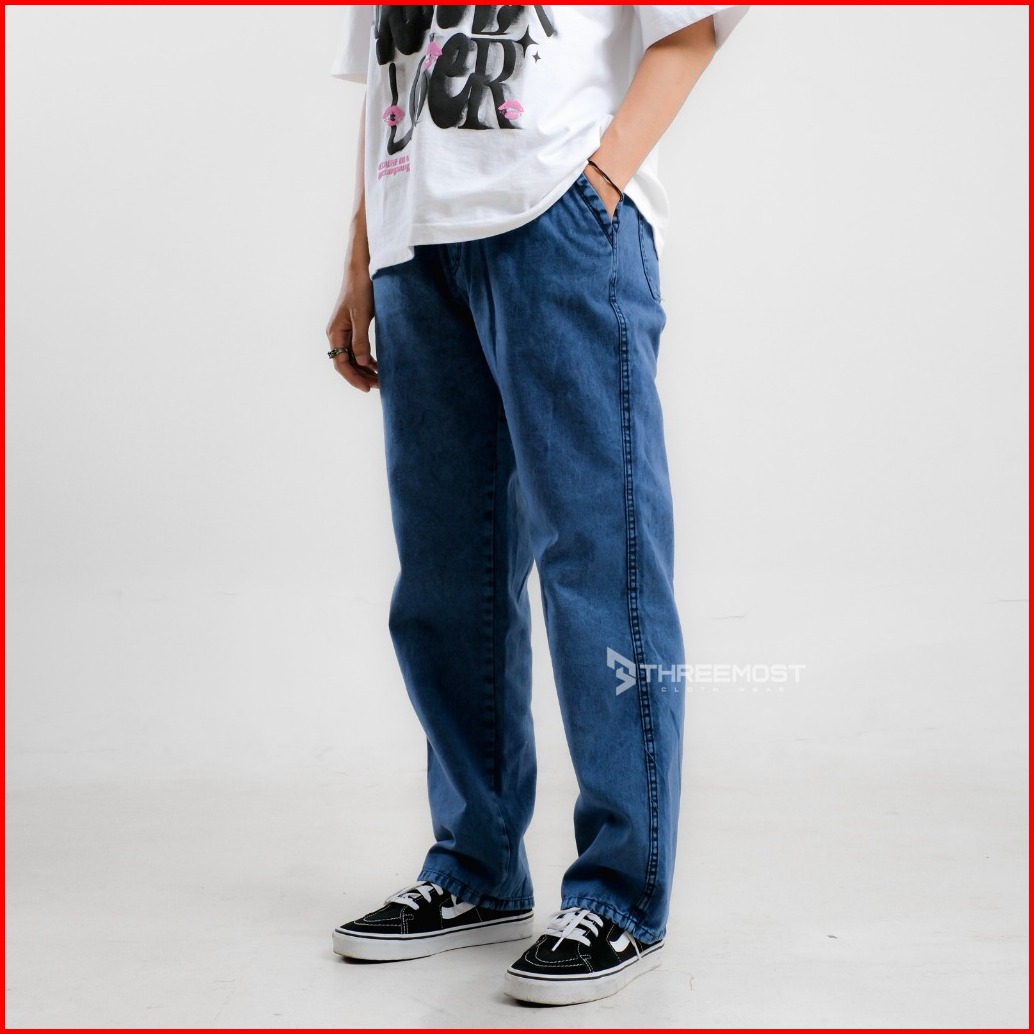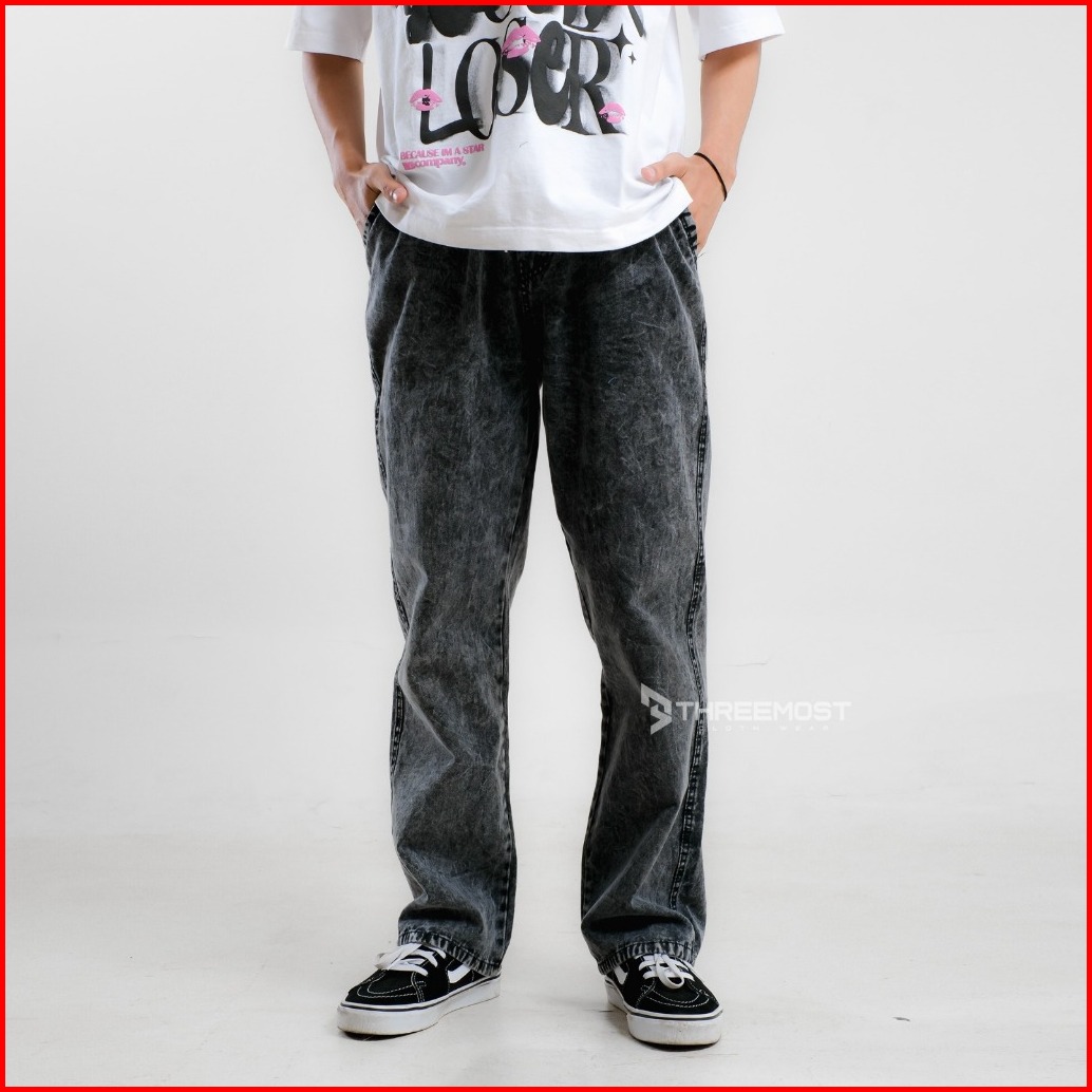 Threemost - Celana Panjang Pria Jeans Style Gombrong Baggy Pants Korean Loose Fit Kulot