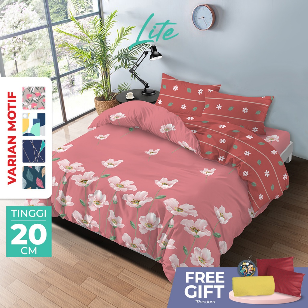 Kintakun Bed Cover Set 180x200 King Lite Minimalis Flower Microfiber T20 cm B2 6in1 Multivarian