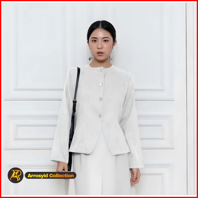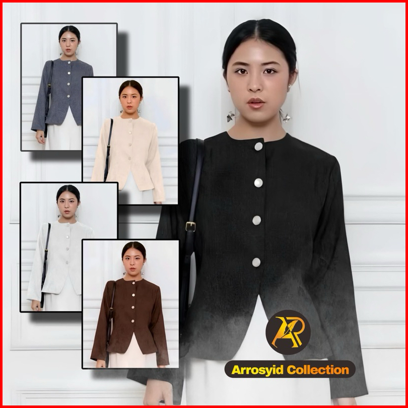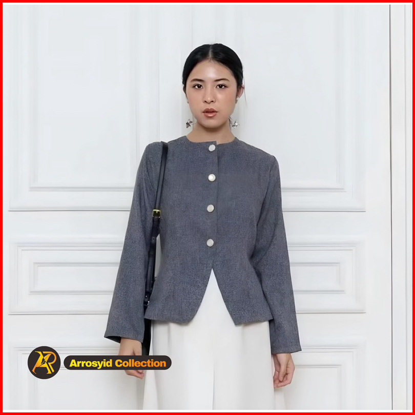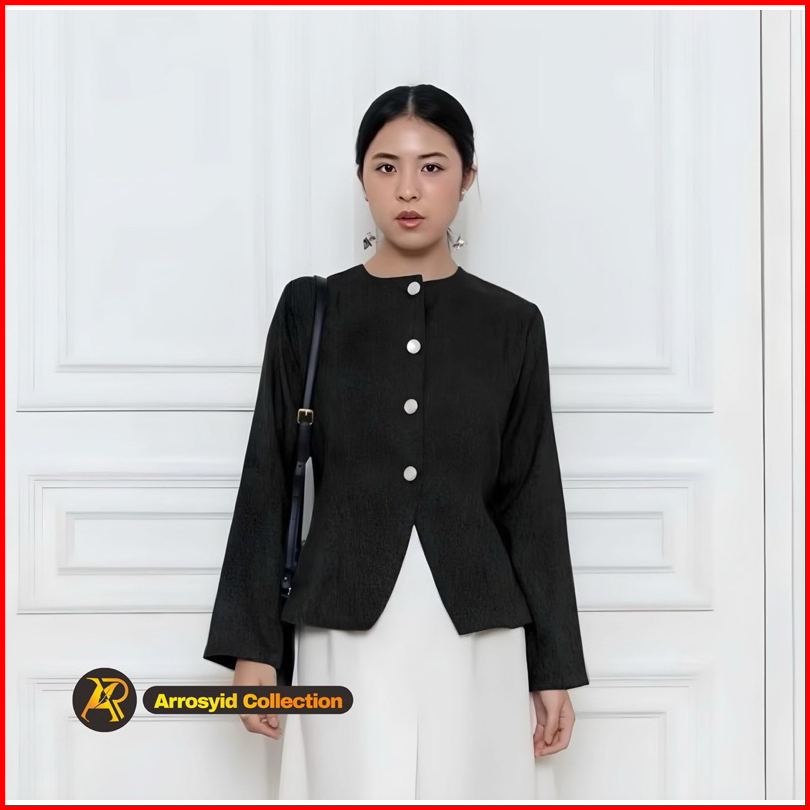 Blazer Wanita Korean Style Bahan Semi Woll Full Kancing Atasan Lengan Panjang Hijab Friendly Blouse Atasan Kekinian