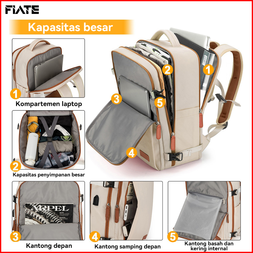 Flate 16 Inch Tas Pergi Wanita Multifungsi 35l Tahan Air Ransel Fashion Dengan Tas Sepatu Terpisah