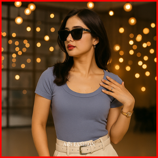 Aes Fashion Sakura Uneck Top - Atasan Wanita Uneck Croptop Lengan Pendek Korean Style Kekinian