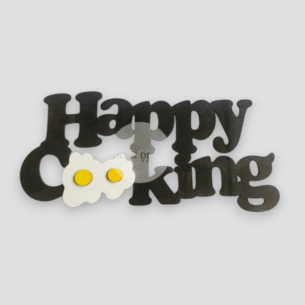 Pajangan Dinding Dapur TELUR Happy Cooking Motif Timbul Kayu Ukuran 30x13cm Laser Cutting