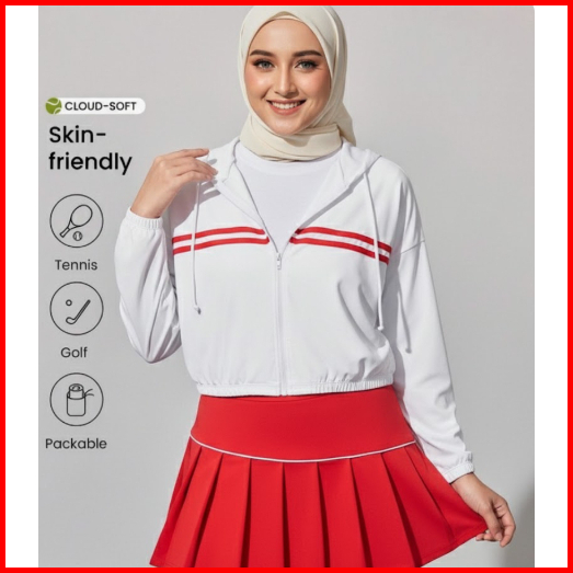 Women Airism Jaket Crop Mesh Hoodie Uv Protection Jaket Dryfit Olahraga Running Padel