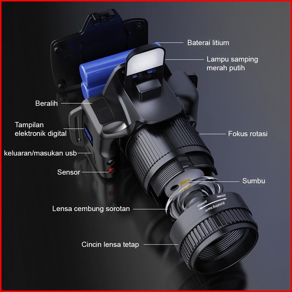 Huntmax Senter Kepala Lampu Senter Kepala Baterai 5000mah 80w Senter Super Terang