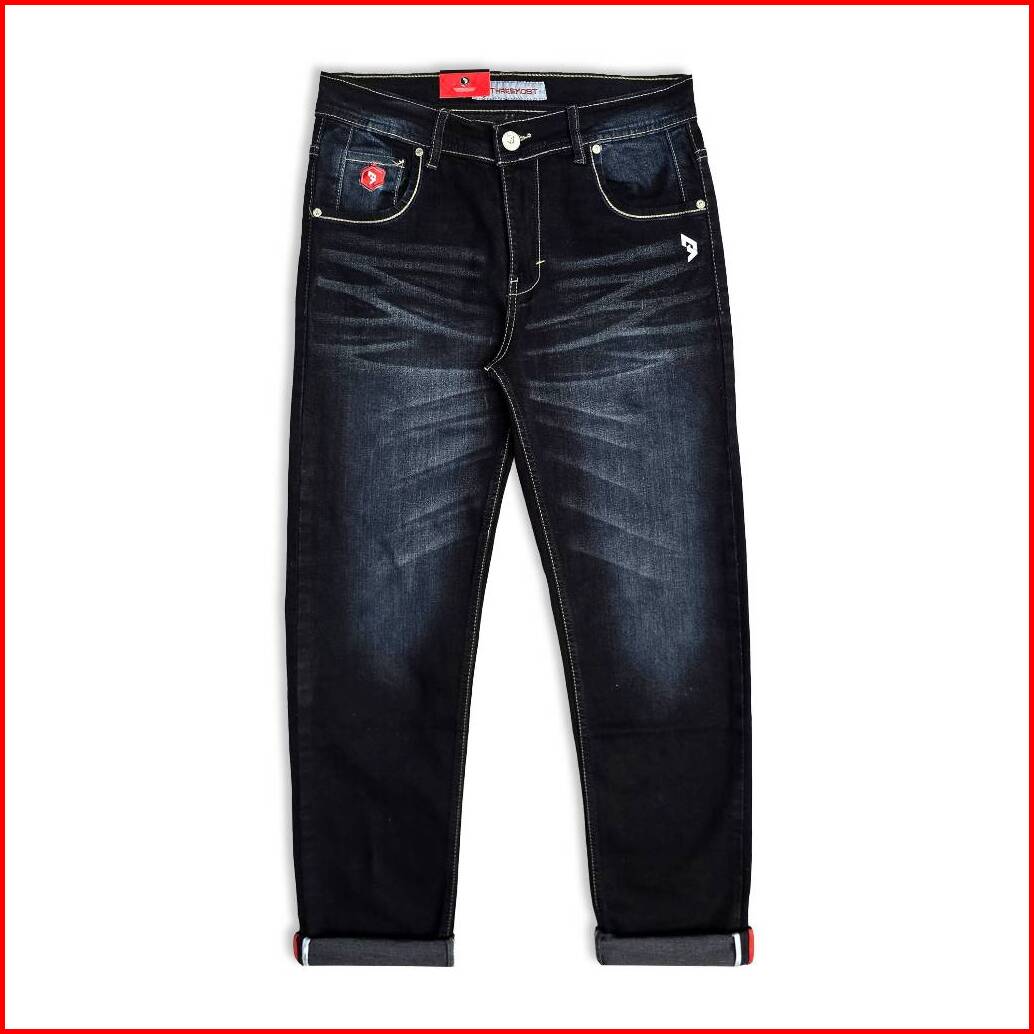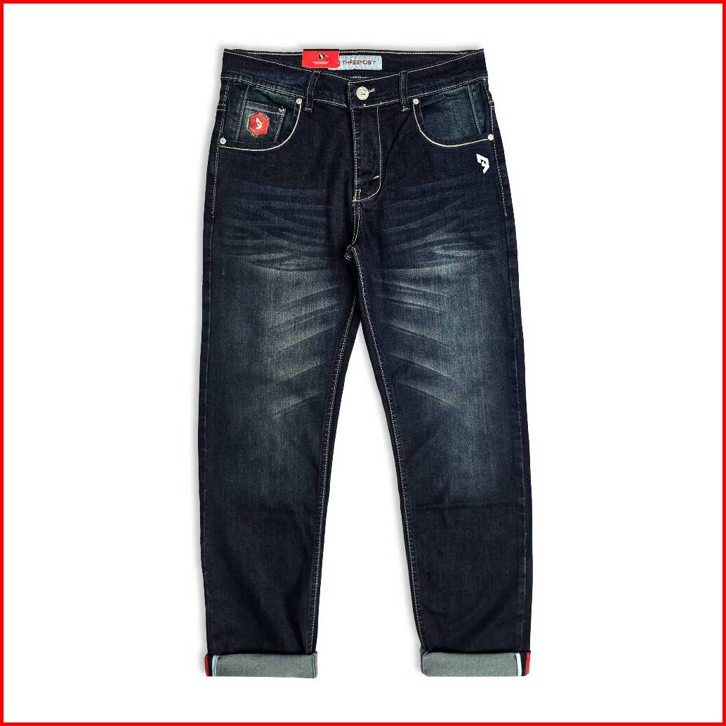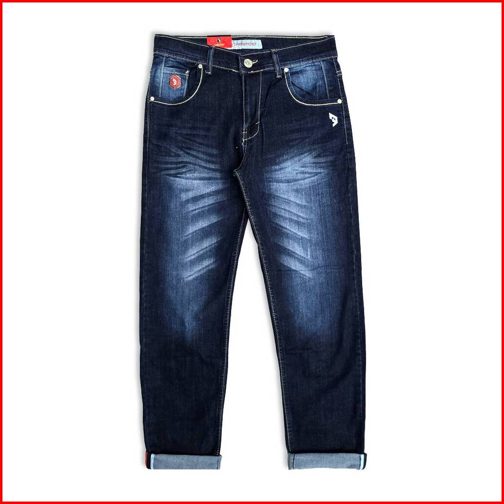 Threemost - Celana Jeans Panjang Pria Stretch Wisker Slimfit Ripped Jeans Ringkel Premium