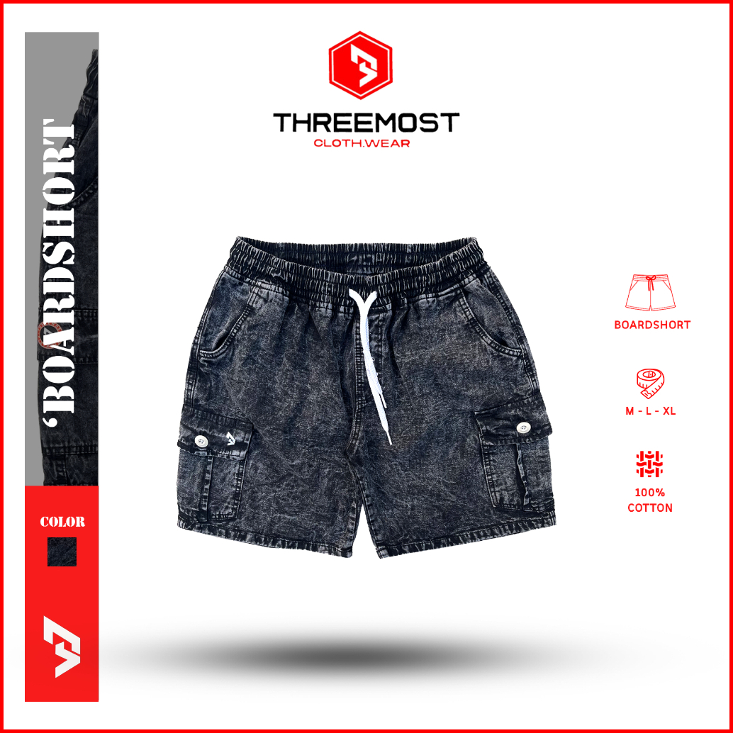 Threemost - Celana Pendek Boardshort Cargo Pendek Pria Cowok Dewasa Pinggang Karet Kolor Short Pants
