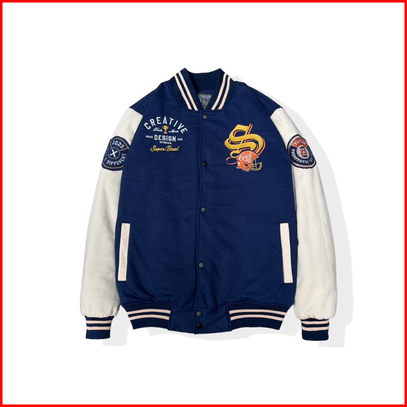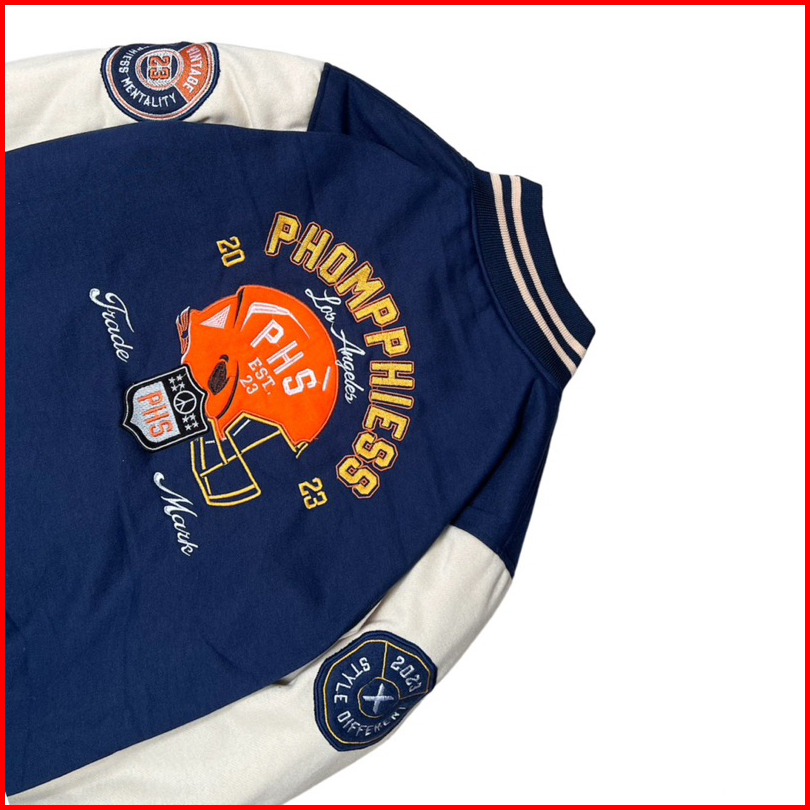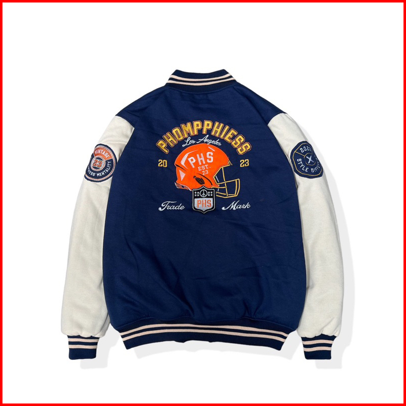 Phompphiess Jacket Varsity Jaket Baseball Full Bordir Pria Wanita