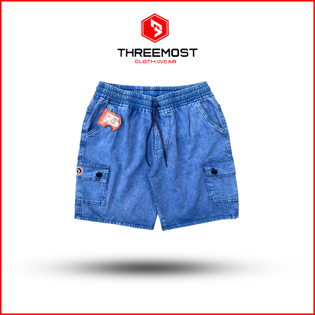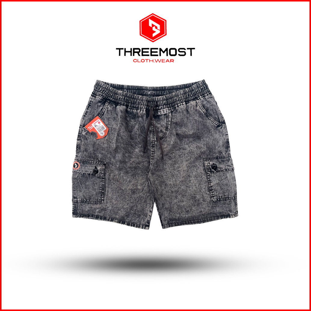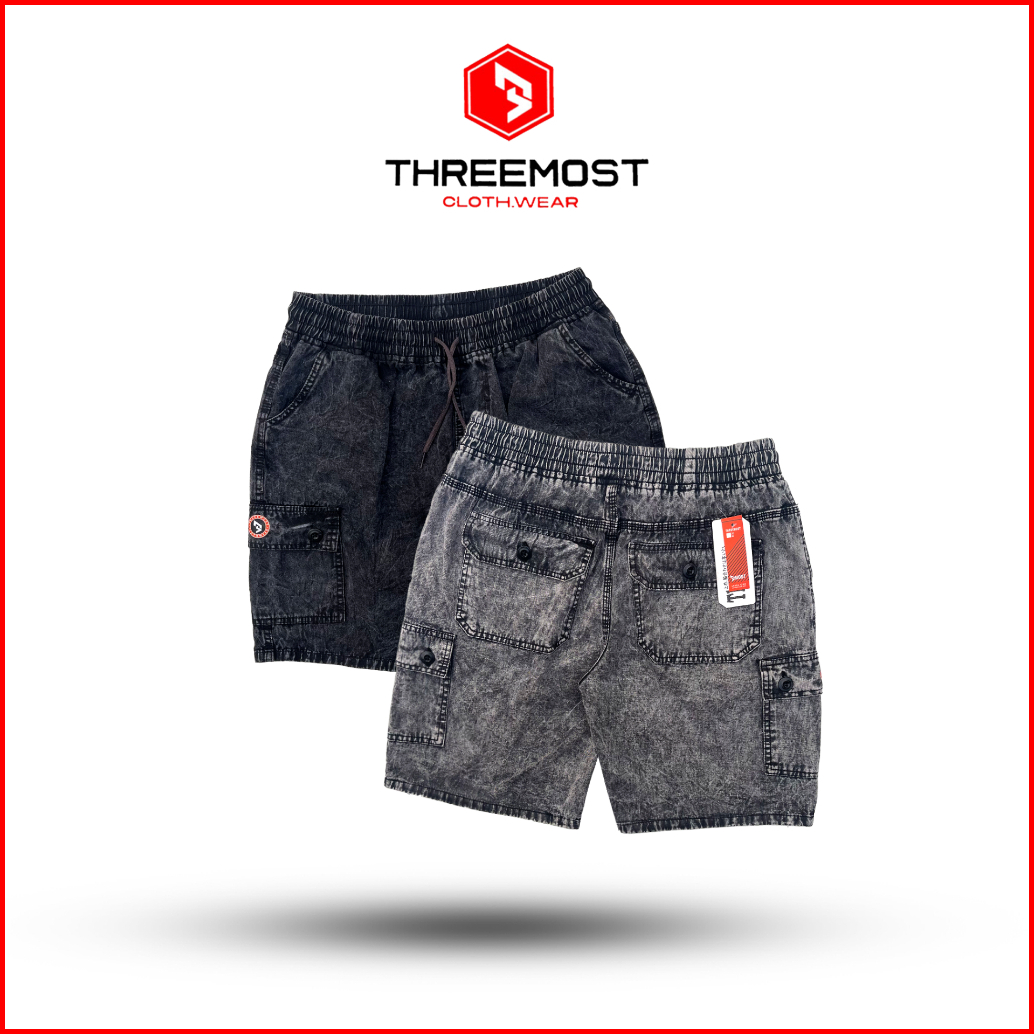 Threemost Celana Pendek Cargo Boardshort Series Warna Washing Snow Kargo Boardshort Pinggang Karet
