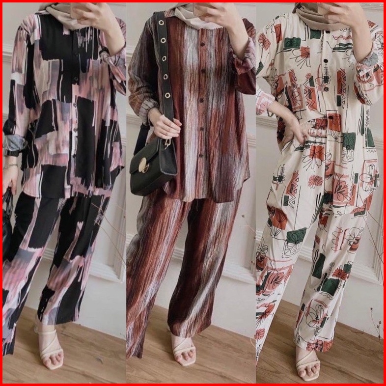 Daily Set Jumbo Ld 120 Baju Tidur Pajamas One Set Setelan Rayon Viscose Tie Dye Motif