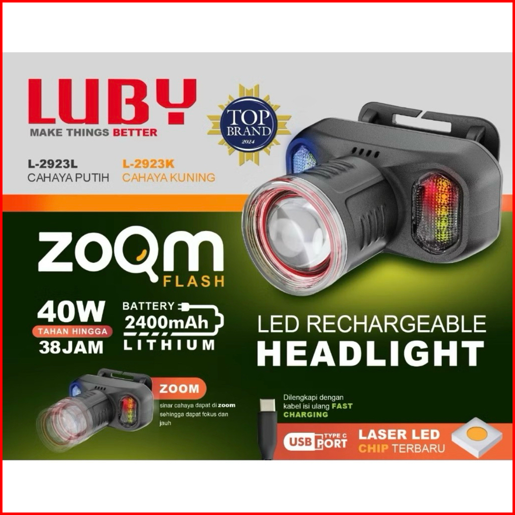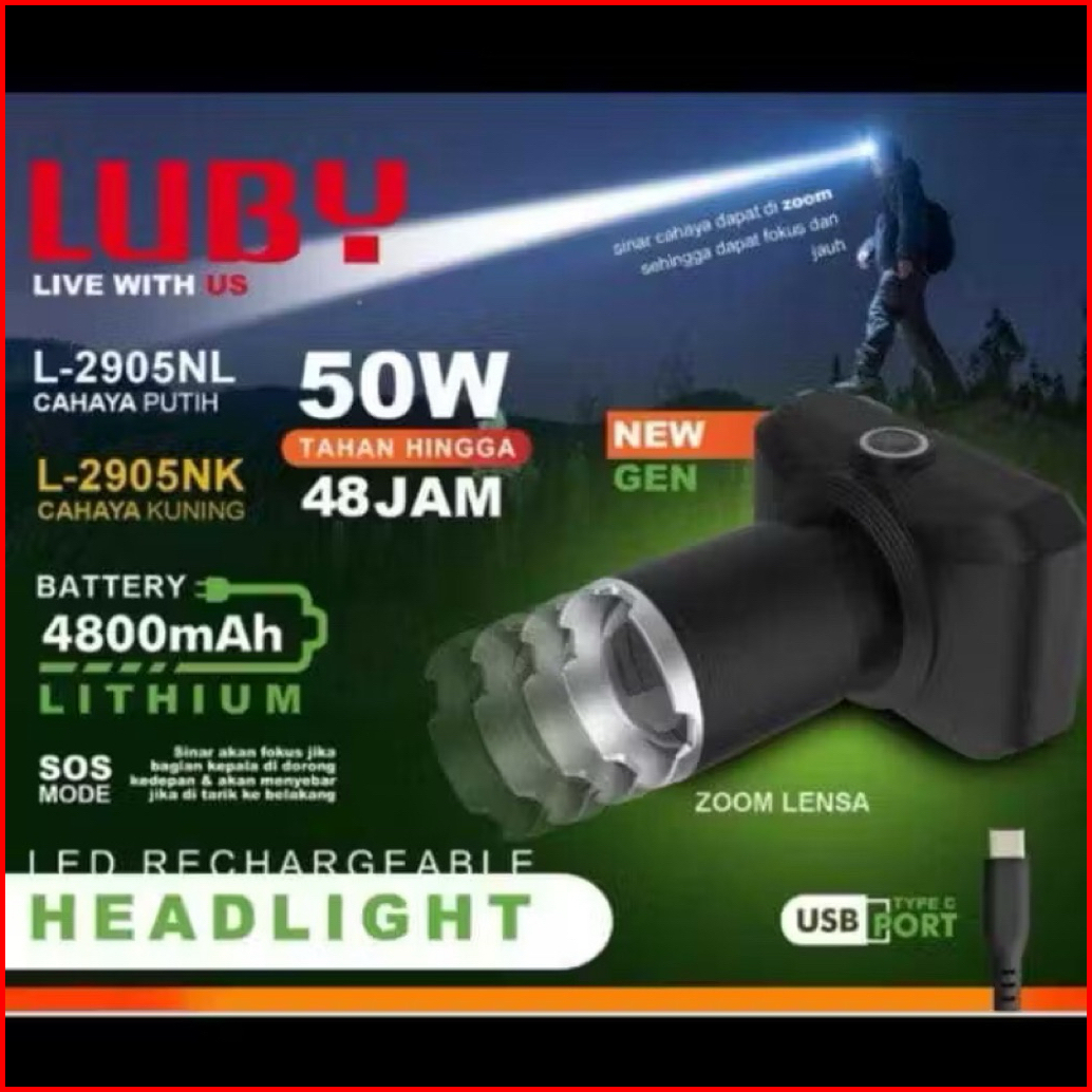Senter Kepala Luby 65w Laser Led Zoom L-2906nl L-2906nk L-2905nl L-2925 Tahan Lama Waterproff 4800mah 48 Jam