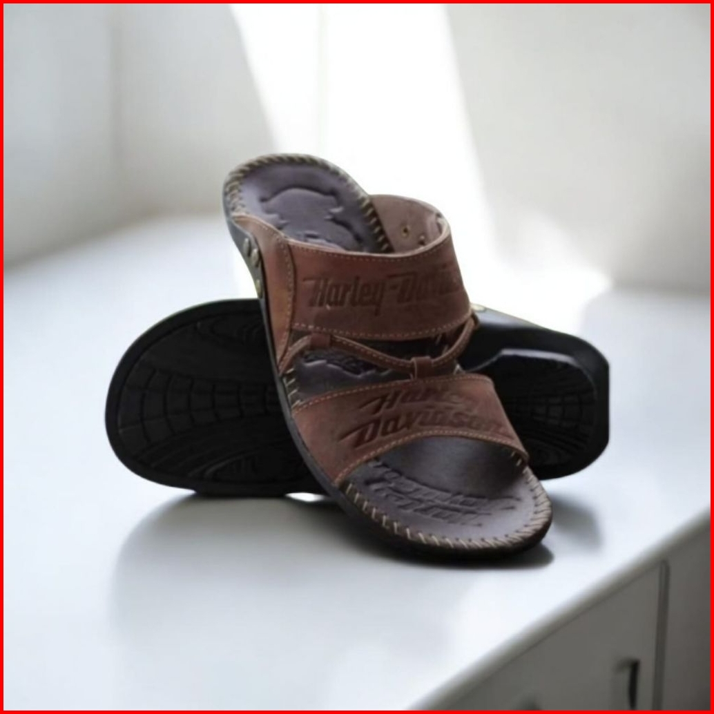 Cuci Gudang Sandal Slop Tali Kulit Sapi Asli Sandal Formal Sandal Casual Pria Harley Davidson