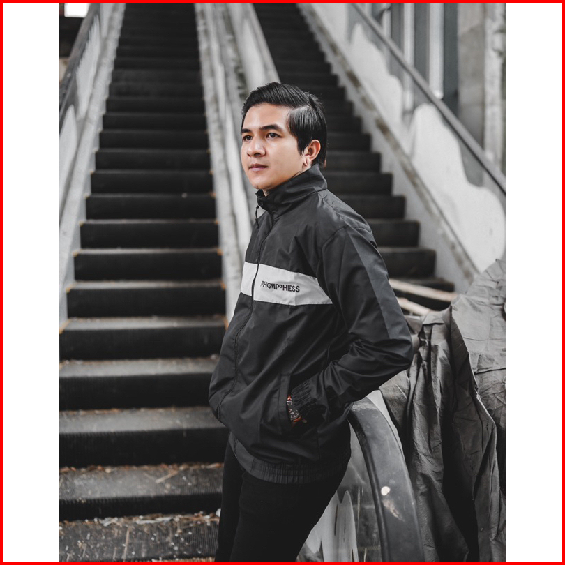 Phompphiess Jaket Tracksuit Hitam Strip Putih Jaket Tracktop Pria Wanita