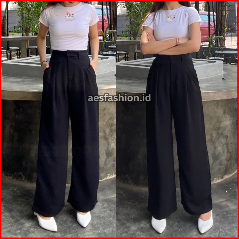 Oro Pants - Rib Knit Premium - Loose Pants Trouser Wanita - Celana Anti Kusut - Celana Kulot Wanita