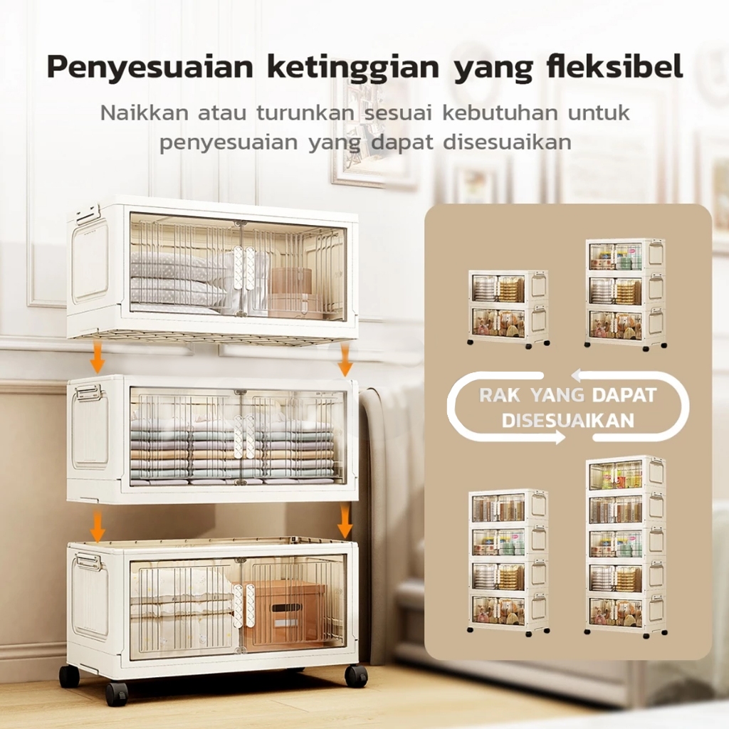 Lemari Plastik Susun Besar - Lemari Pakaian Anak & Bayi, Rak Baju Multifungsi, Organizer Hemat Ruang, Katrol Senyap, Anti Debu