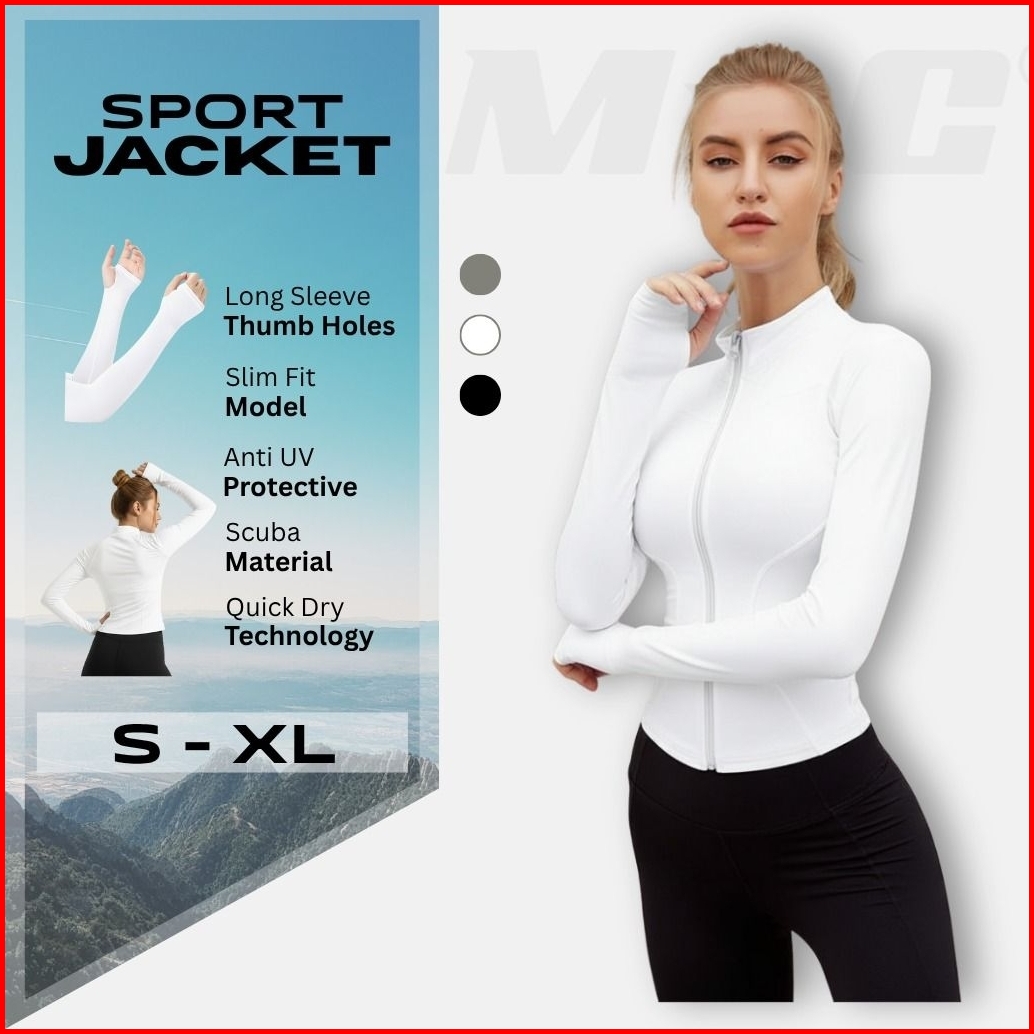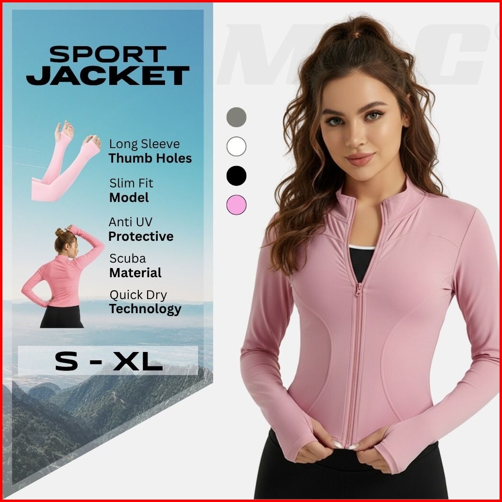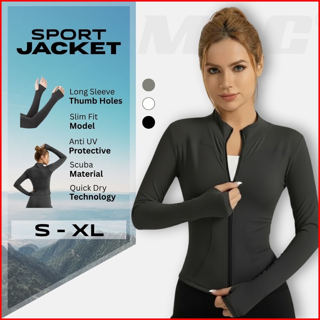 Mng Jaket Olahraga Wanita Lengan Panjang Body Fit Anti Uv Quick Dry Untuk Running Yoga Sepeda Gym