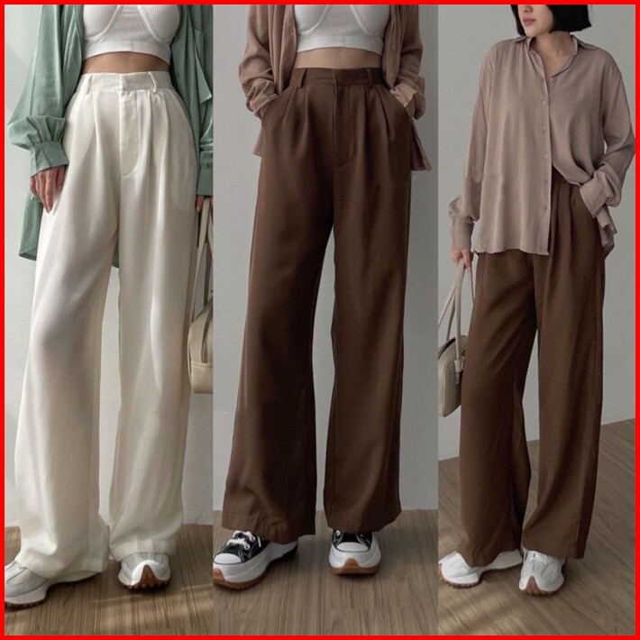 Celana Daily Wanita Kulot Crinkle Airflow Cullote Loose Pants Highwaist Kekinian