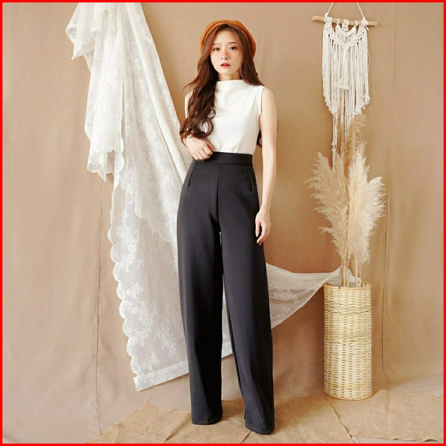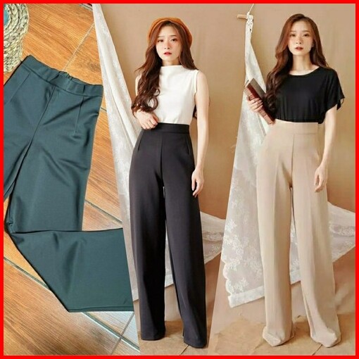 Celana Jumbo Kulot Knit Wanita Kulot Big Size Highwaist Celana Anti Kusut Kasual Formal Panjang