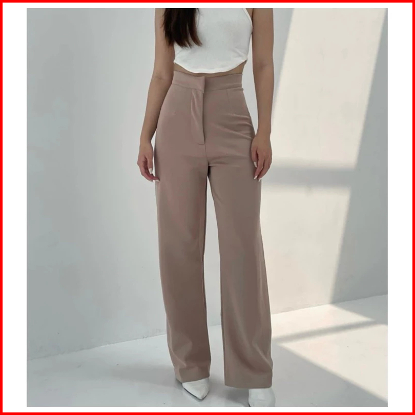 Cozy Long Pants Celana Wanita Kulot Rib Knit Premium Loose Pants Highwaist Panjang Anti Kusut
