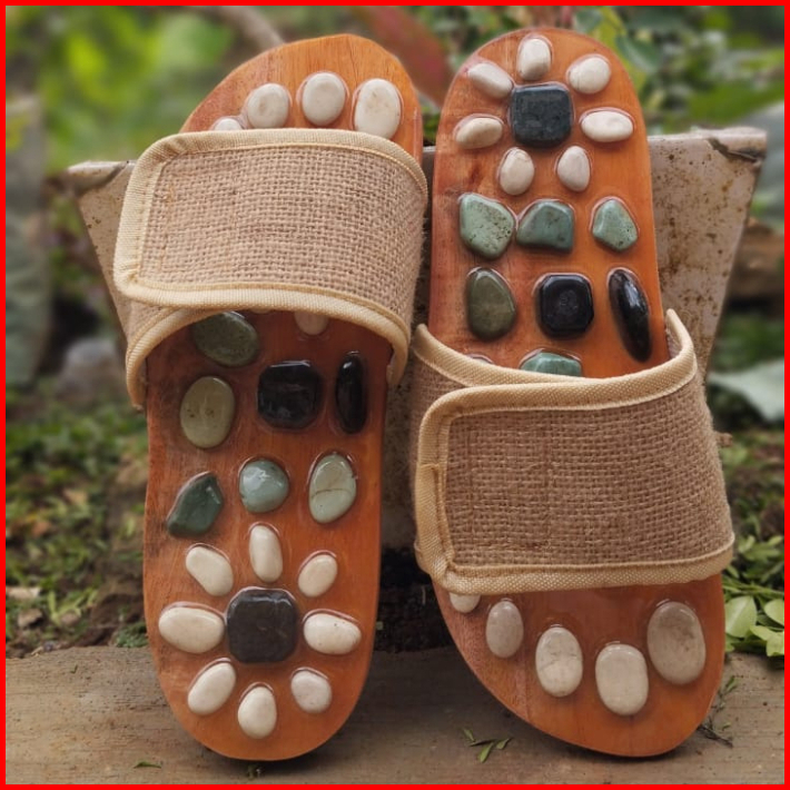 Sandal Terapi Refleksi Kayu Batu Alam Untuk Kesehatan Tubuh Dan Relaksasi Kaki. Membantu Meredakan Pegal Rematik Dan Men