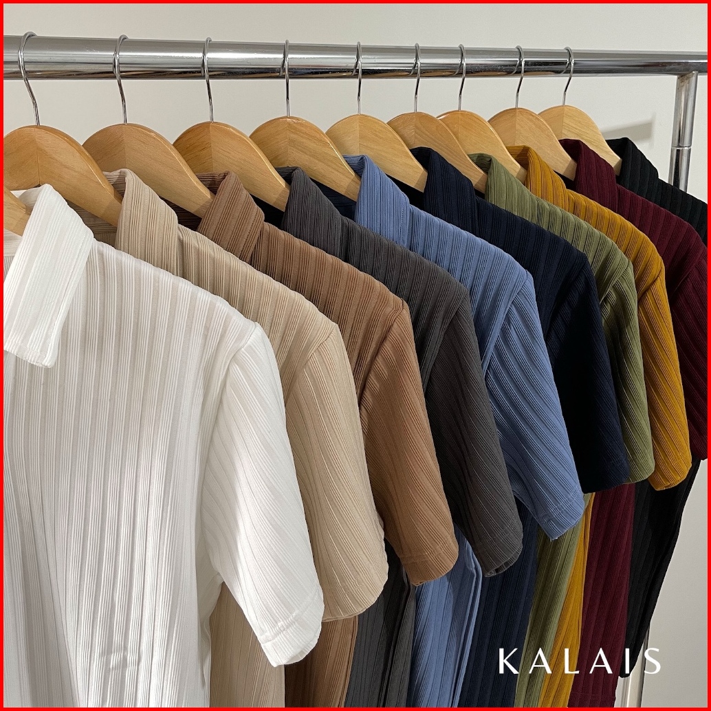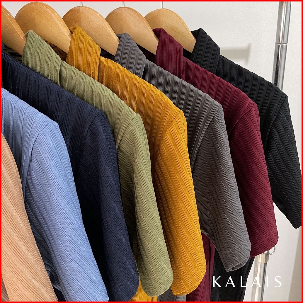 Kalais Polo Shirt Stripe Knit Pria Slim Fit