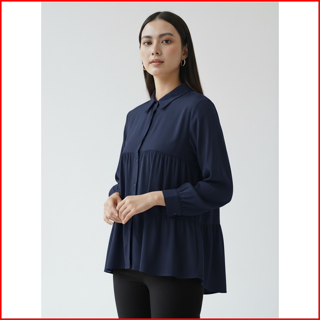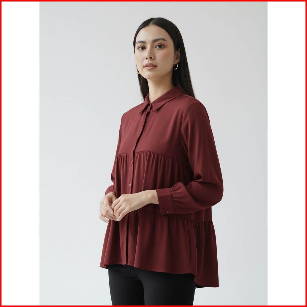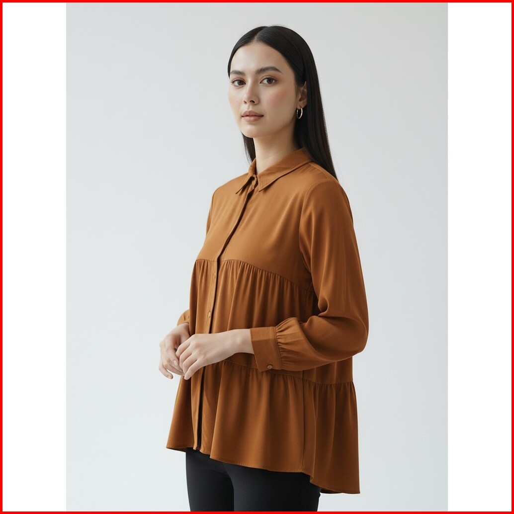 Aes Fashion - Jemma Blouse Kemeja Susun Rayon Twill Premium Atasan Wanita Rempel Blouse Susun