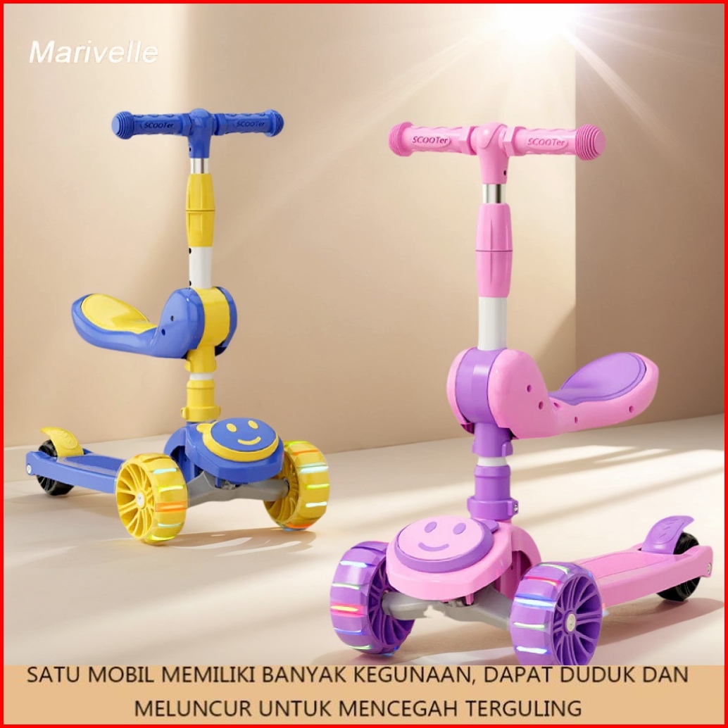 Marivelle Skuter Anak Roda 3 Mainan Scooter Otoped Bisa Lipat Dengan Lampu Musik