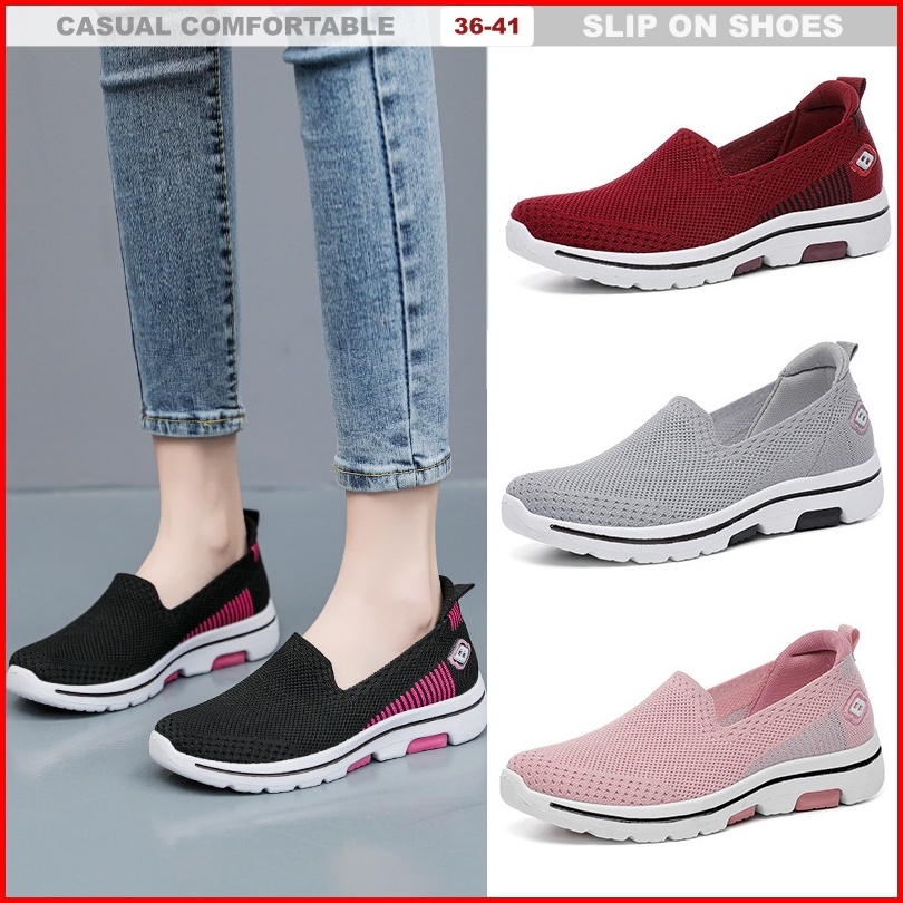 Sepatu Wanita Sneakers Go Walk Import Slip On Soft Kanvas Elastis Anti Slip Comfortable Free Ongkir