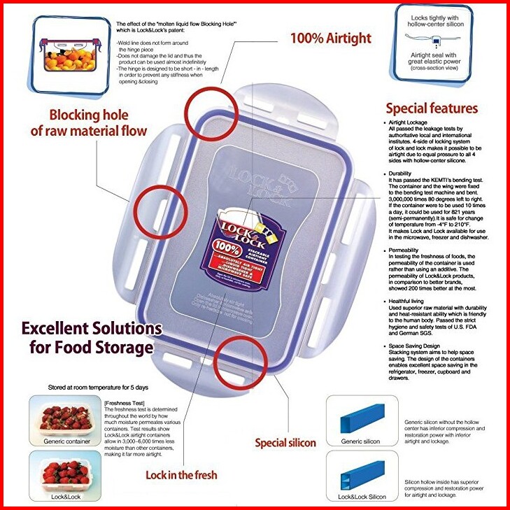 Locknlock Kotak Makan Hpl825b - Rectangular Short 2.3l With Divider