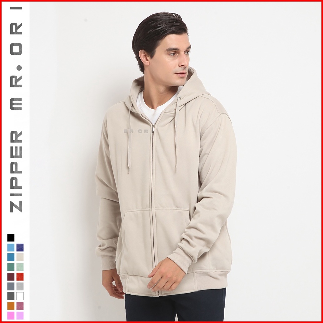 Sweater Hoodie Zipper Tebal Size S-xxxl Beige Pria Wanita