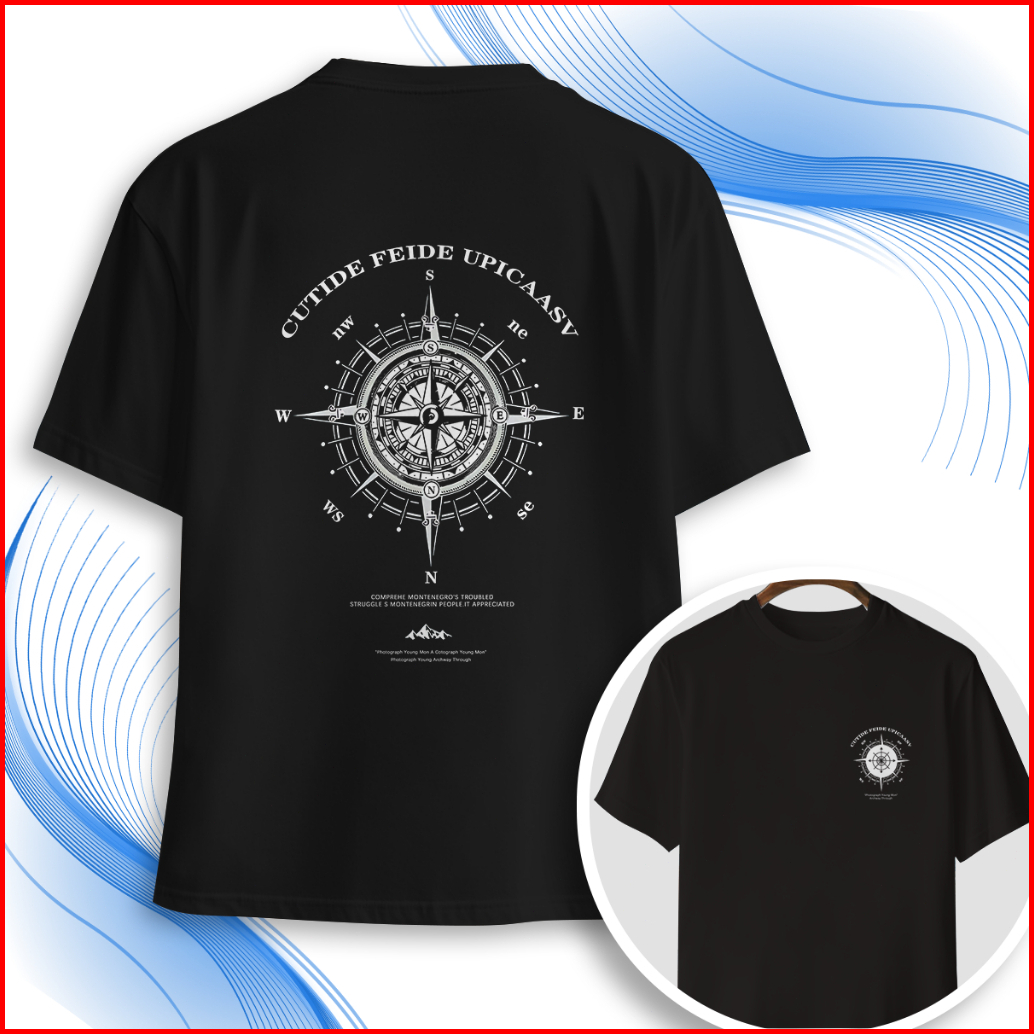 Outlets Chrone Heart Compass Kaos Black White D 24s Fit T Shirt Pria Short Sleeve