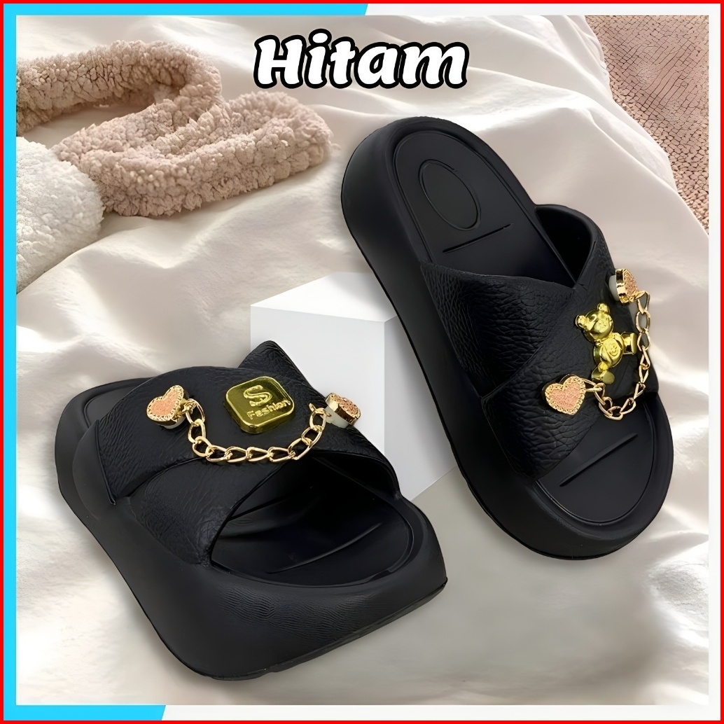 Sandal Selop Wanita Kekinian Terbaru Tinggi 5cm Platform Tebal Premium Sendal Wedges Wanita Elegan Casual Lucu Bear Cewe