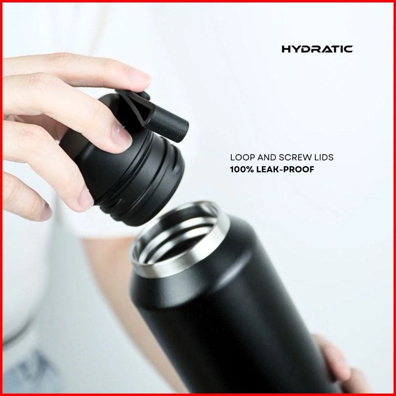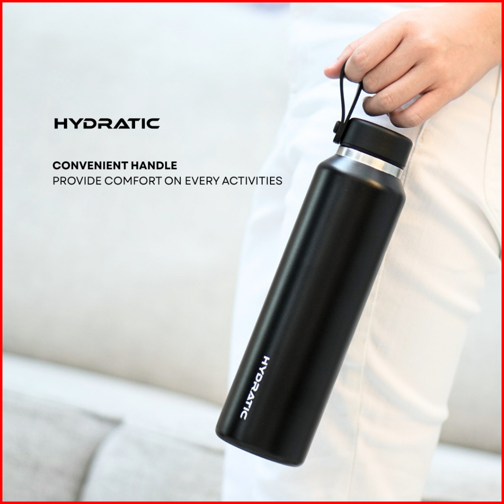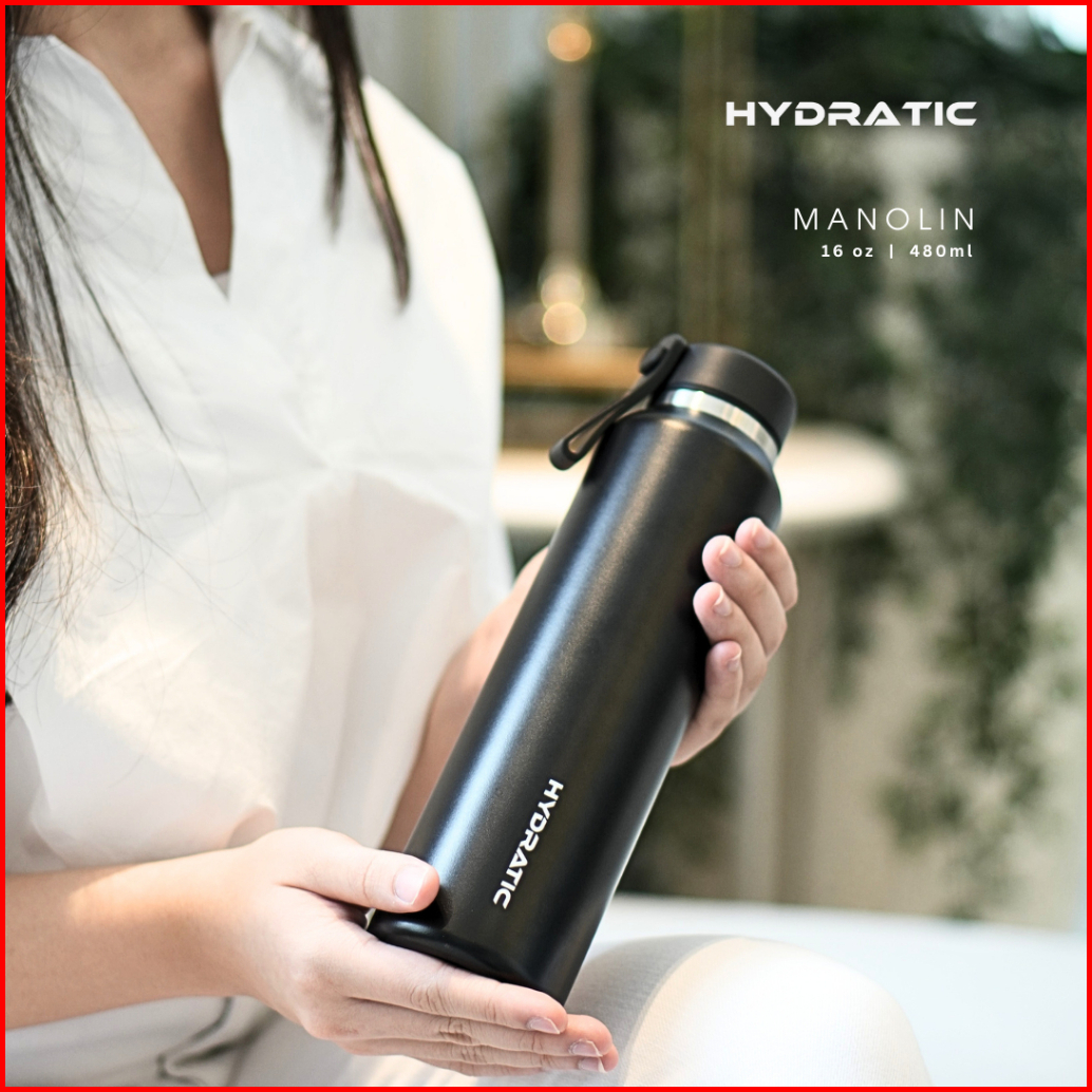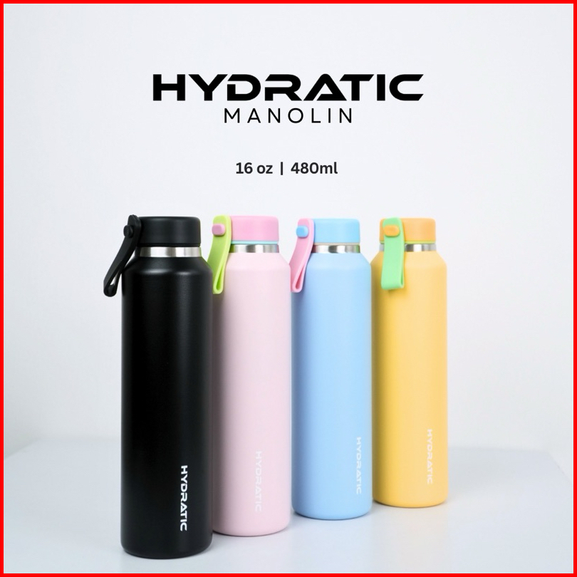 Botol Minum Tumbler Hydratic Manolin 16oz 480ml - Black - Tahan Panas Dingin 12 - 18 Jam - Stainless Steel Double Wall V