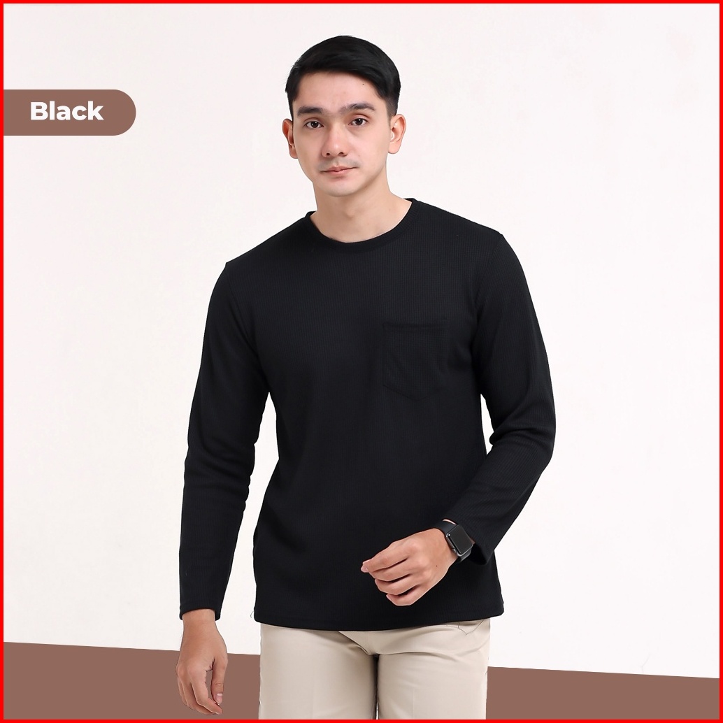 Broguy Kaos Polos Waffle Lengan Panjang - Black