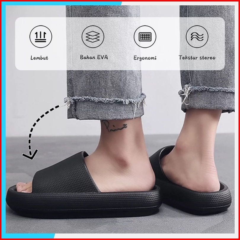 Sandal Pria Kekinian Polos Premium Eva Empuk Terbaru Murah Sendal Cowok Keren Karet Korea Rumah