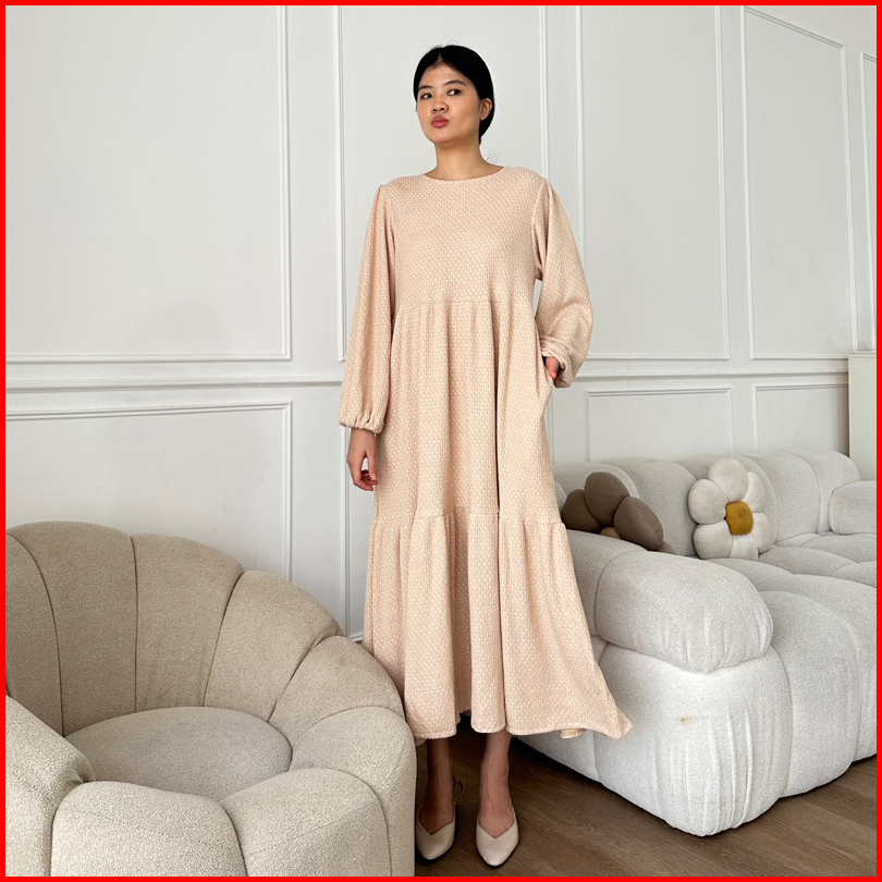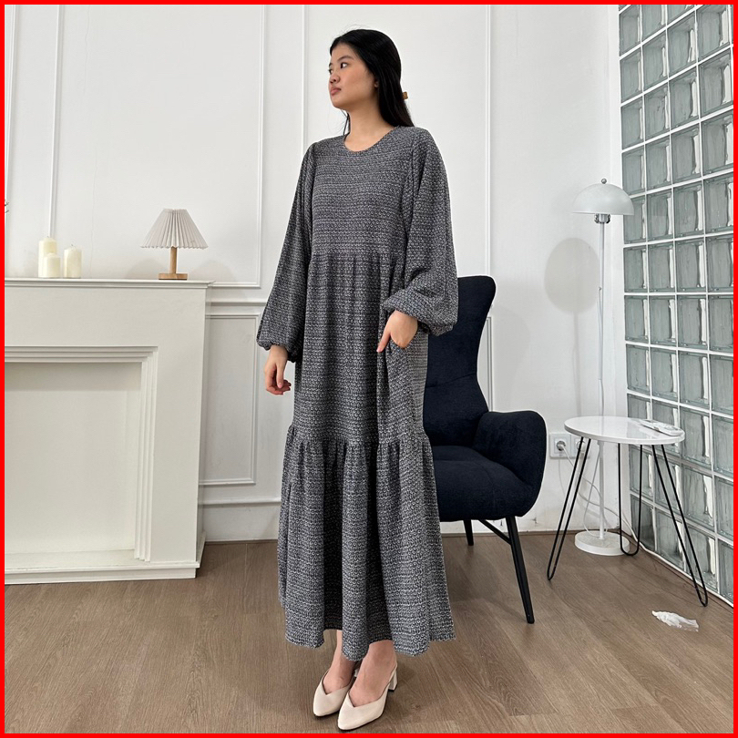 Kirby Knit Bubble Dress Maxi Midi Dress Bumil Baju Lebaran Hijab Wanita Friendly Knit