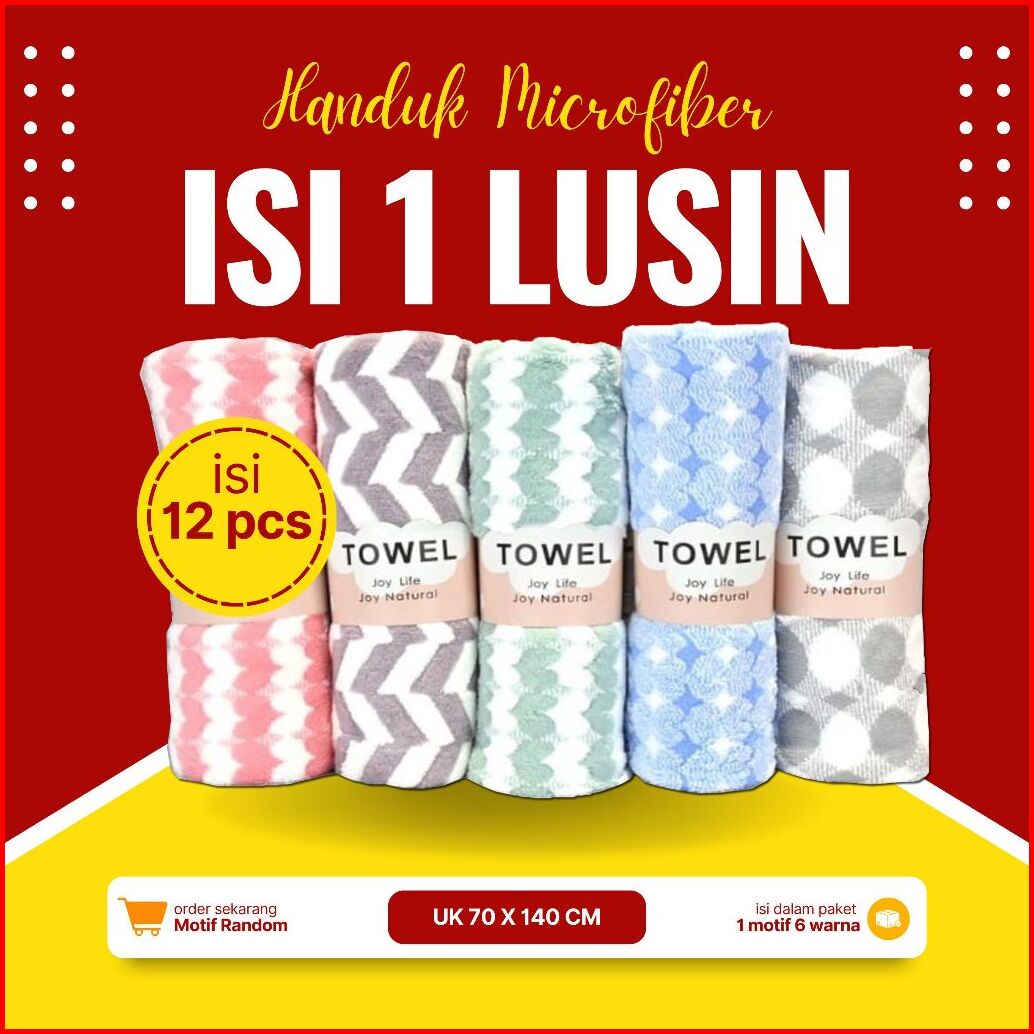 Vl - Murah Handuk Microfiber 12 Pcs 1 Lusin Ukuran Dewasa 70 X 140 Cm