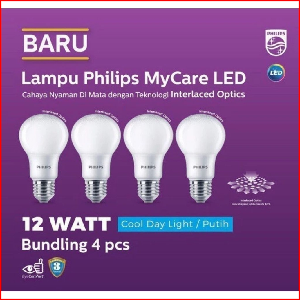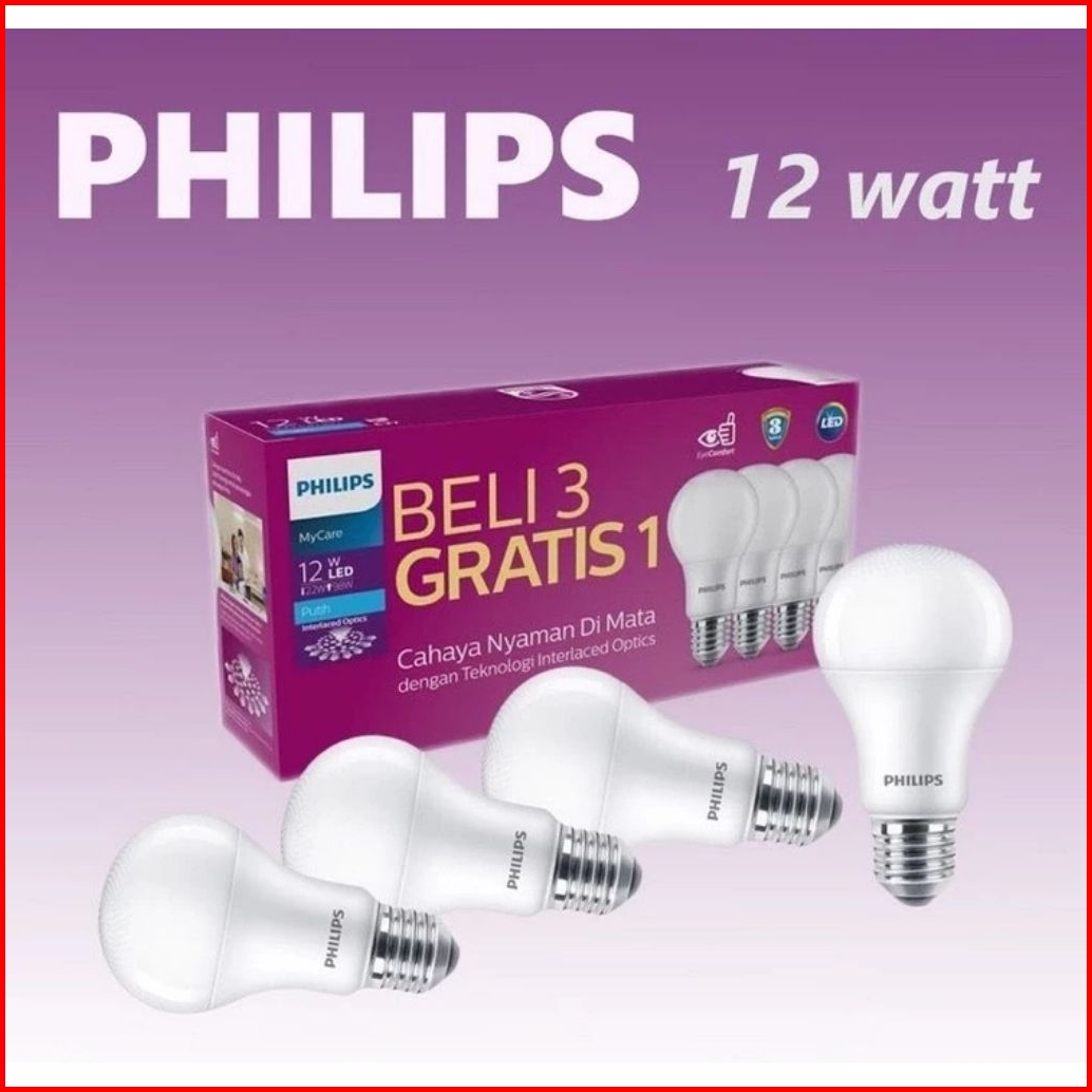 Isi 4 Pcs Lampu Led Philips 12 Watt Putih Terang 6500k Multipck My Care Beli 3 Gratis 1