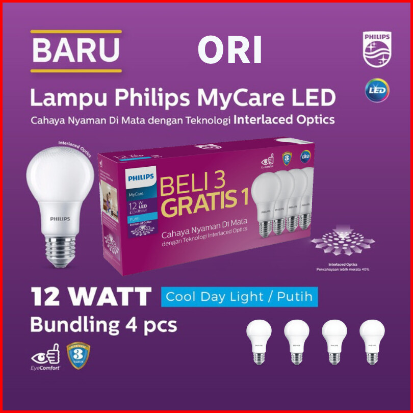 Lampu Philips Lampu Led Philips 4w 6w 8w10w 12watt Multipack Lampu Ledrumah Led Bulb 230v 6500k Putih1pcs 2pcs 4pcs