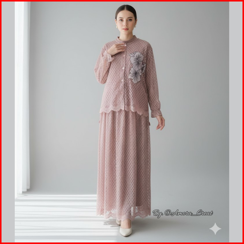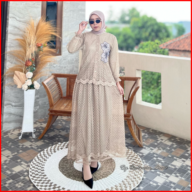 One Set Hadju Tunik Brukat Sapto Brokat Tali Kancing Kondangan Wisuda Bridesmaids Acara Formal Muslim Panjang Outfit Tre