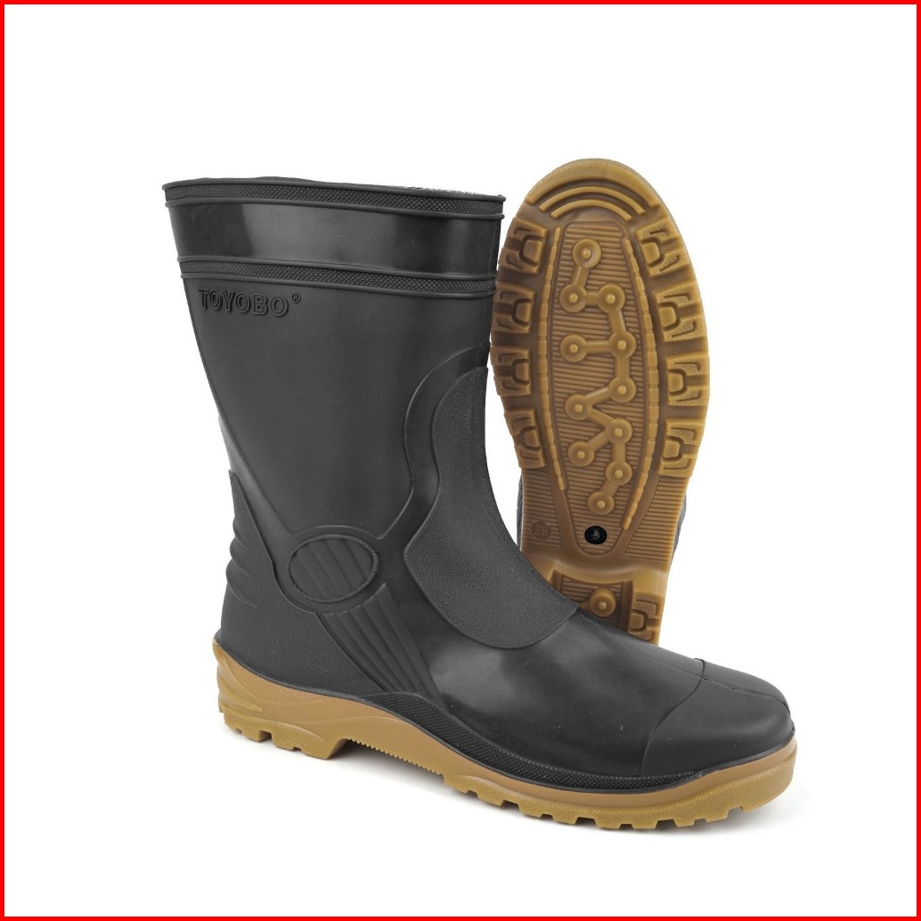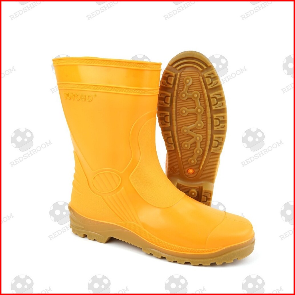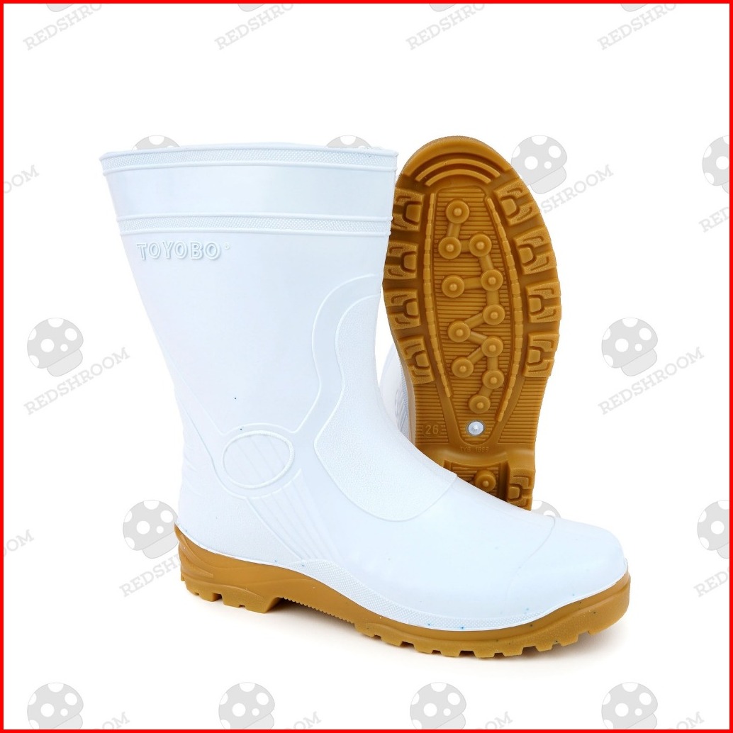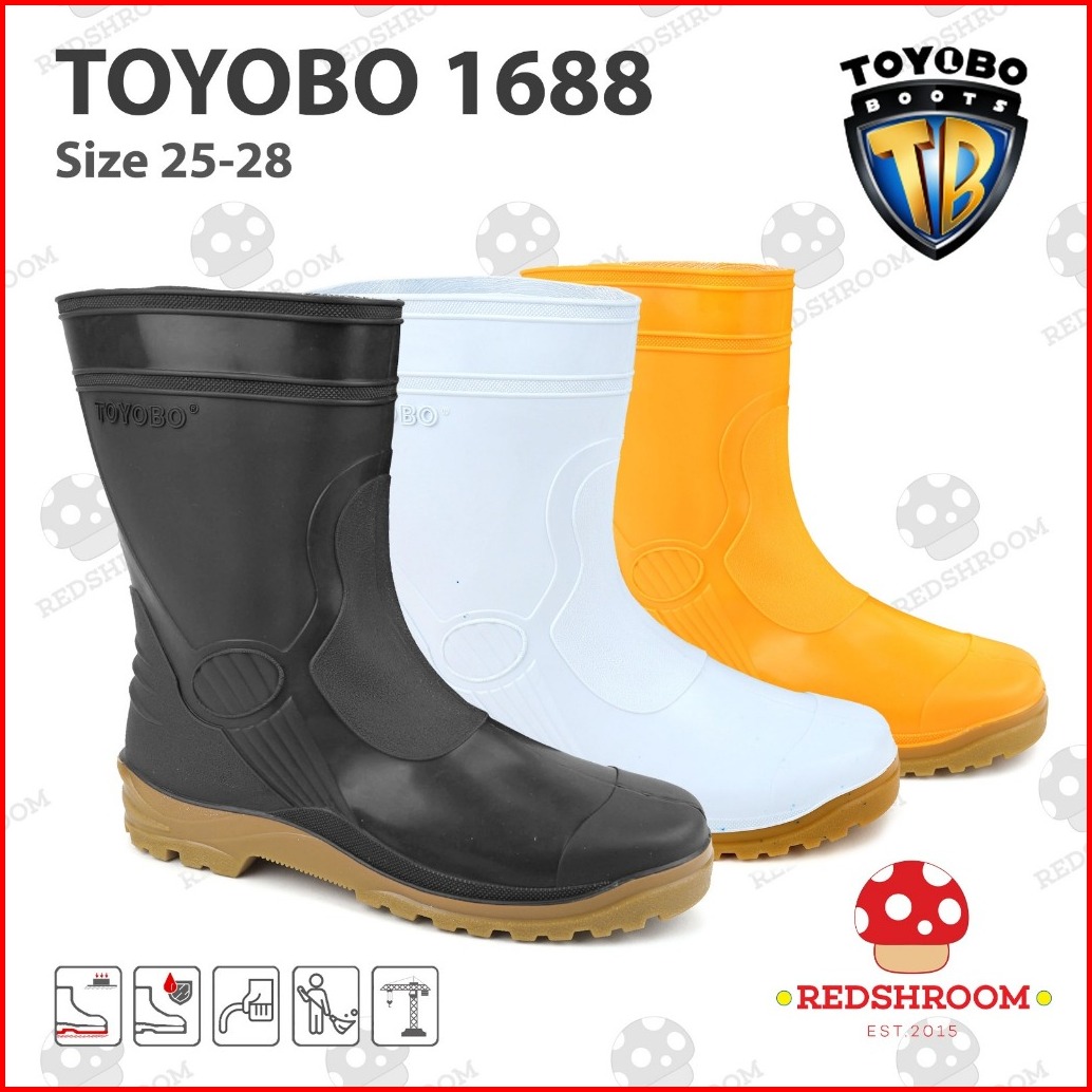 Sepatu Boots Pendek Toyobo 1688 Putih Kuning Hitam Karet Lokal Anti Air Slip Konstruksi