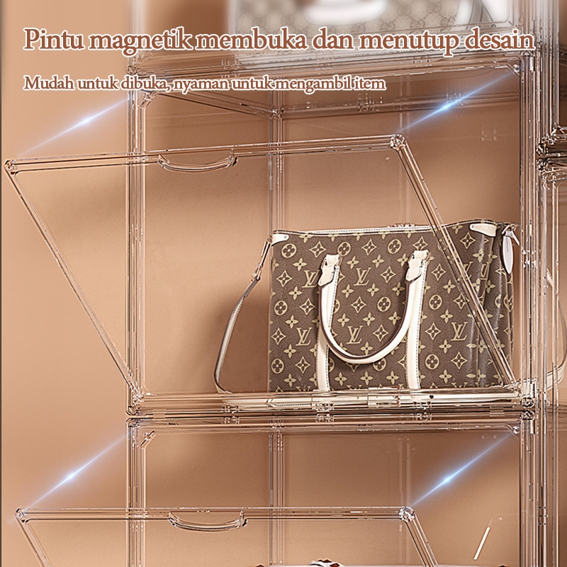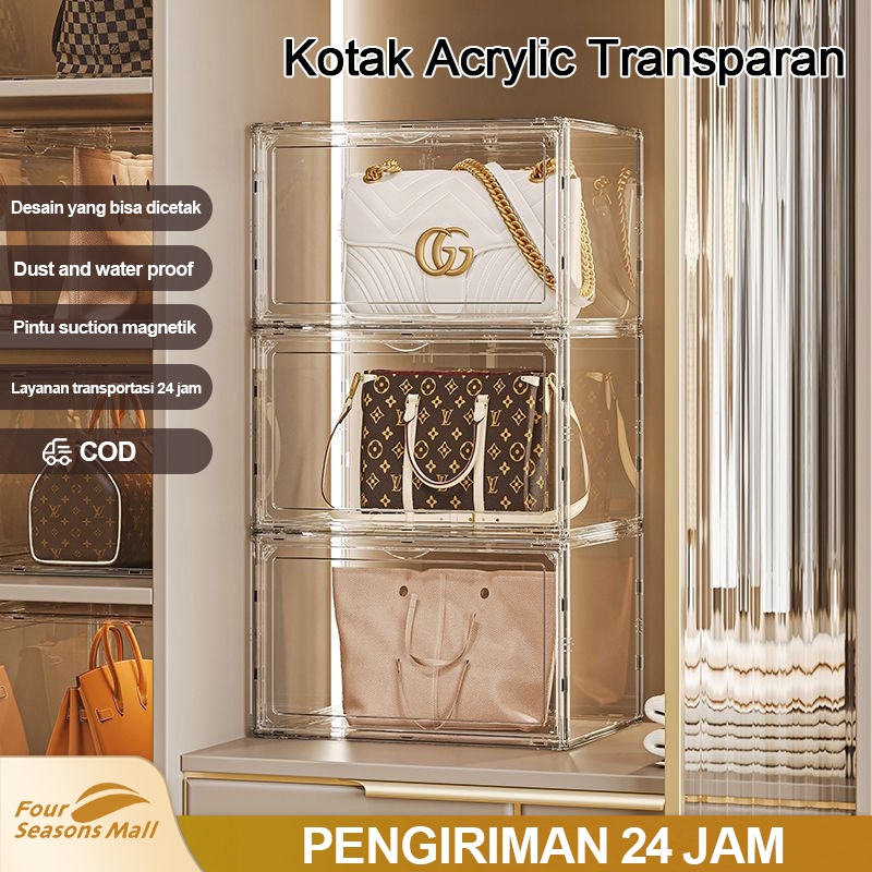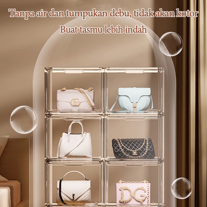 Kotak Penyimpanan Tas Akrilik Kotak Penyimpanan Kabinet Tahan Debu Dewa Transparan Rak Display Mewah Penutup